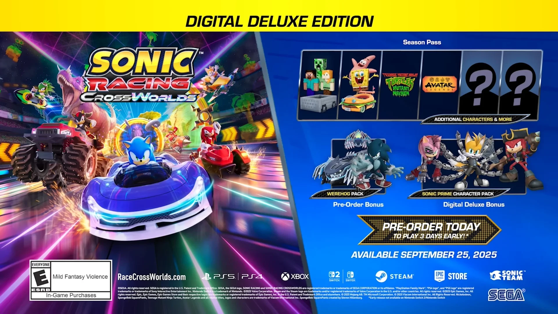 За предзаказ можно получить комплект косметических предметов Werehog Pack, который в момент релиза станет доступен даже владельцам предзаказа стандартного издания. А вот за покупку Deluxe-издания дадут дополнительный набор персонажей, сезонный пропуск с гостевыми героями и расширенный доступ к игре — провести первые гонки получится 22 сентября.