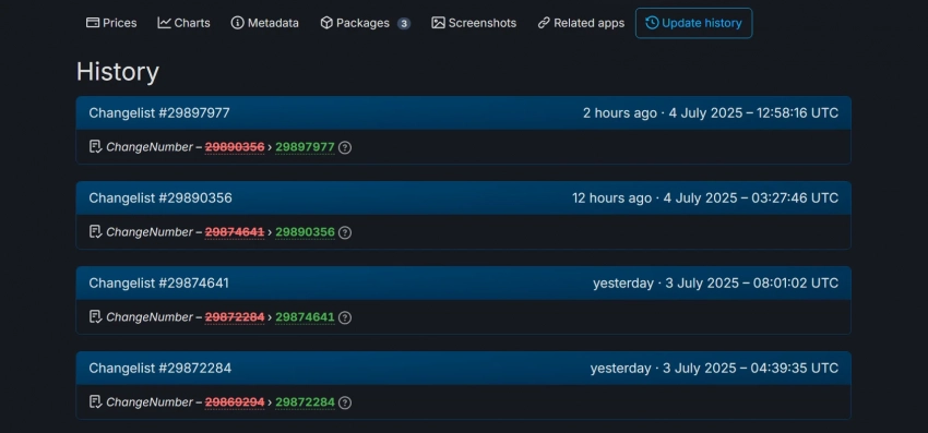 Так, в период с 30 июня по 4 июля Hollow Knight: Silksong пережила семь обновлений в базе данных Steam. Например, за сегодняшний день было замечено два изменения параметра ChangeNumber. Однако доходчивое объяснение со стороны администрации SteamDB разбивает оптимистичные надежды поклонников.