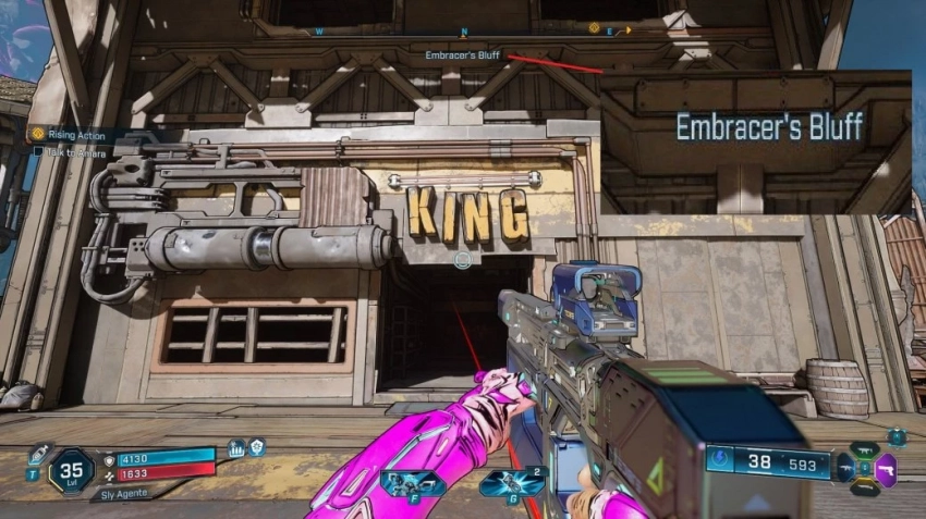 Локация Embracerʼs Bluff представляет собой небольшой обветшалый город с кучами мусора и летающими существами, которые постоянно атакуют игрока. Здесь можно получить 2 квеста: один связан со смертоносным торговым автоматом, второй — со злобным говорящим ИИ-унитазом, которого все ненавидят.