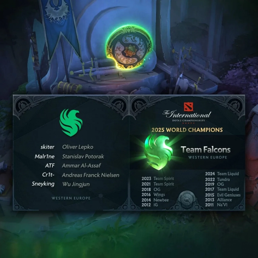 - Champion Capsules — капсулы со стикерами Team Falcons в честь победы на TI 2025.